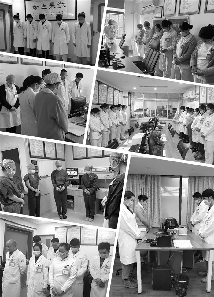 上午10點(diǎn),隨著防空警報(bào)拉響,阜康醫(yī)療全體黨員和醫(yī)務(wù)工作者、行后人員分別在阜康醫(yī)院各院區(qū)、各科室、各藥房肅穆站立、低頭默哀。在這次疫情的特殊期間,有些人倒下了,但更多的人勇敢地扛起責(zé)任,在黨中央的堅(jiān)強(qiáng)領(lǐng)導(dǎo)下和疫情頑強(qiáng)斗爭(zhēng),如今我們已經(jīng)基本控制這場(chǎng)斗爭(zhēng)的局面,正在向全面勝利努力奮進(jìn)。