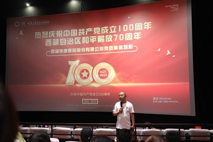 為深化黨史學(xué)習(xí)教育,激發(fā)愛國情懷,增強(qiáng)全體黨員的榮譽(yù)感、使命感,值此中國共產(chǎn)黨成立100周年之際,2021年7月1日晚,西藏阜康醫(yī)療股份有限公司黨委統(tǒng)一組織觀看電影《1921》。公司黨委專職副書記劉連福同志與全體黨員、員工一起重溫中國共產(chǎn)黨人在風(fēng)雨如磐中擔(dān)起了救亡圖存重任,讓中國革命前途煥然一新的故事。