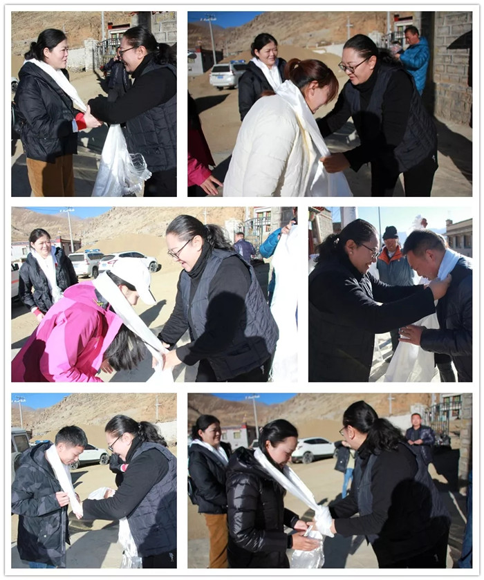 嘎布村駐村工作隊(duì)隊(duì)長(zhǎng)為醫(yī)療隊(duì)獻(xiàn)上哈達(dá)